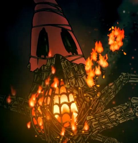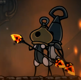 En sí el boss no es complicado. Quizás lo peor es que la mayoría del combate se debe hacer en el golpeando en el aire. Imprescindible el blasón de la Parca, pues te permite el golpeo recto hacia abajo, lo que te permitirá rebotar una y otra vez hasta acabar con cada uno de los apéndices. Una vez destruidos los apéndices, el resto del combate lo puedes hacer desde el suelo, lo que facilita las cosas, ya que solo tendrás que esquivar las bolas de fuego que lanza y golpear. Como recompensa te da una herramienta de las más poderosas del juego, pues te permite disparar de forma automática mariposas de fuego a los enemigos.